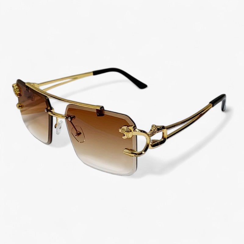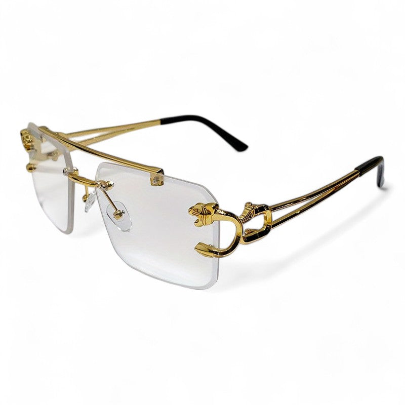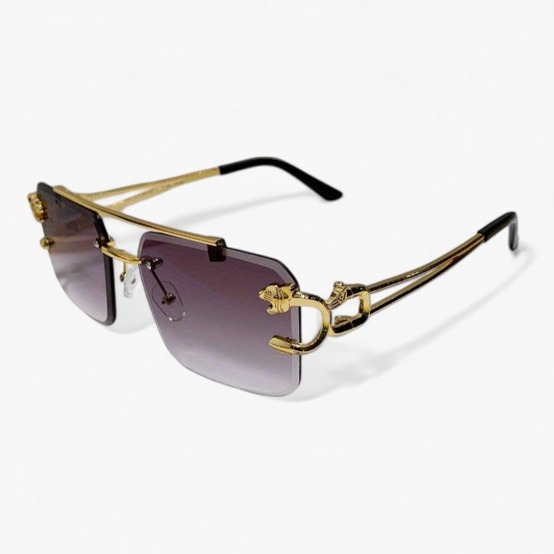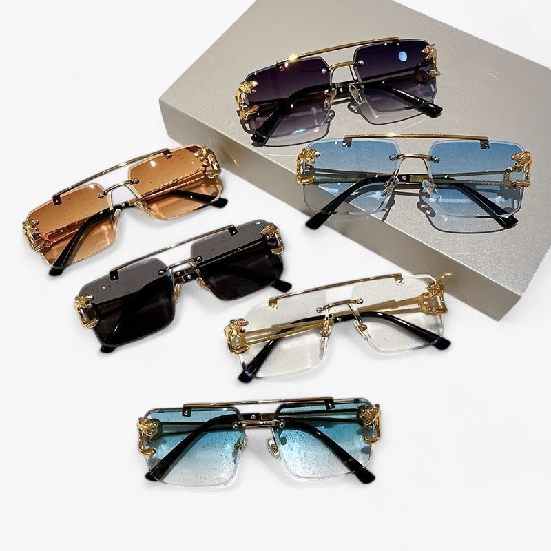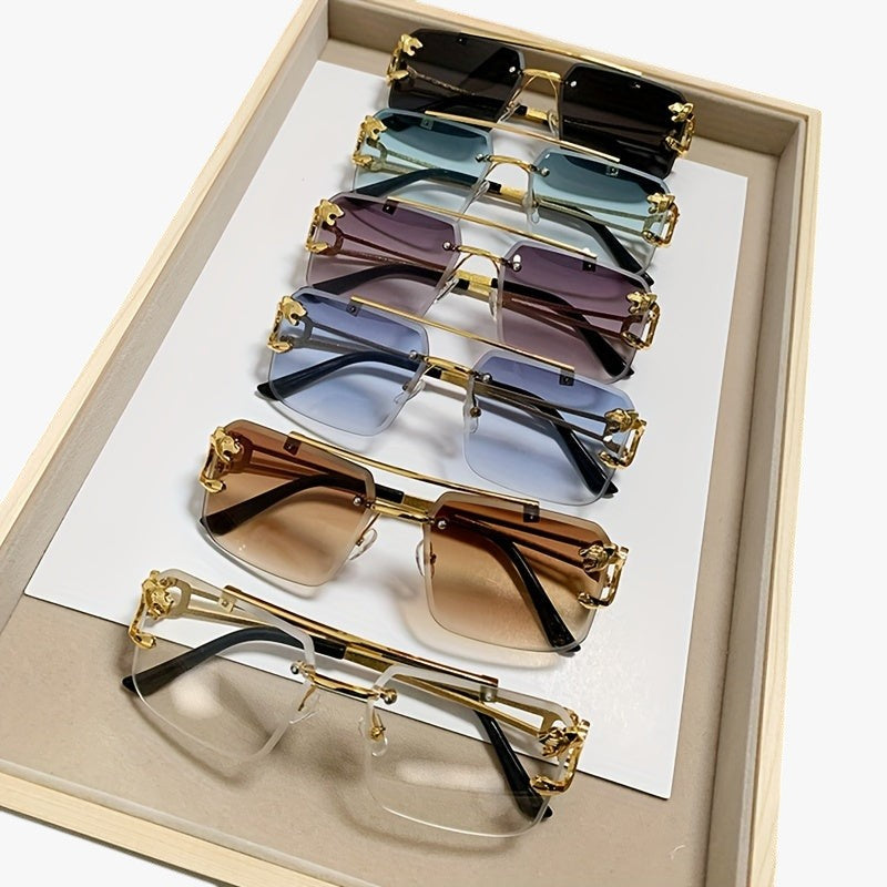 Entdecken Sie die perfekte Kombination aus Stil und Funktionalität mit unseren quadratischen rahmenlosen Sonnenbrillen für Männer, komplett mit goldfarbenen Tigerkopfdekorationen an den Seiten. Diese Sonnenbrillen sind nicht nur ein modisches Accessoire, sondern bieten auch Schutz vor der Sonne und Blendung beim Fahren dank der entspiegelt Gläser. Das rahmenlose Design und die markante Dekoration verleihen jedem Look eine persönliche Note und halten Sie stilvoll und geschützt, während Sie fahren. Streben Sie einen einzigartigen und modischen Look mit unseren quadratischen rahmenlosen Sonnenbrillen mit Tigerkopfdekoration an und genießen Sie komfortable und sichere Reisen mit Stil.
